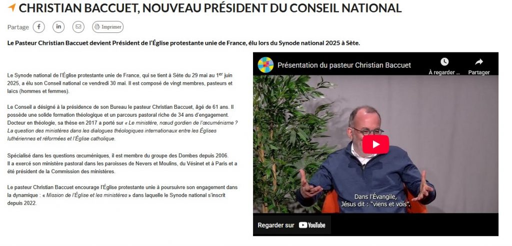 Le lien vers la vidéo :https://epudf.org/actualites/synode/le-pasteur-christian-baccuet-est-le-nouveau-president-de-leglise-protestante-unie-de-france/